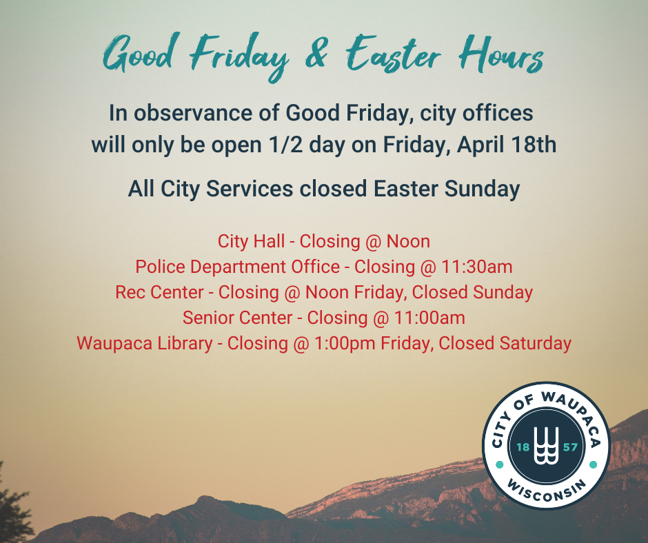 Easter Holiday – City Service Hours Related Date Apr 18 - 19 2025 Expired! Time All Day Category City Service Hours Share this event