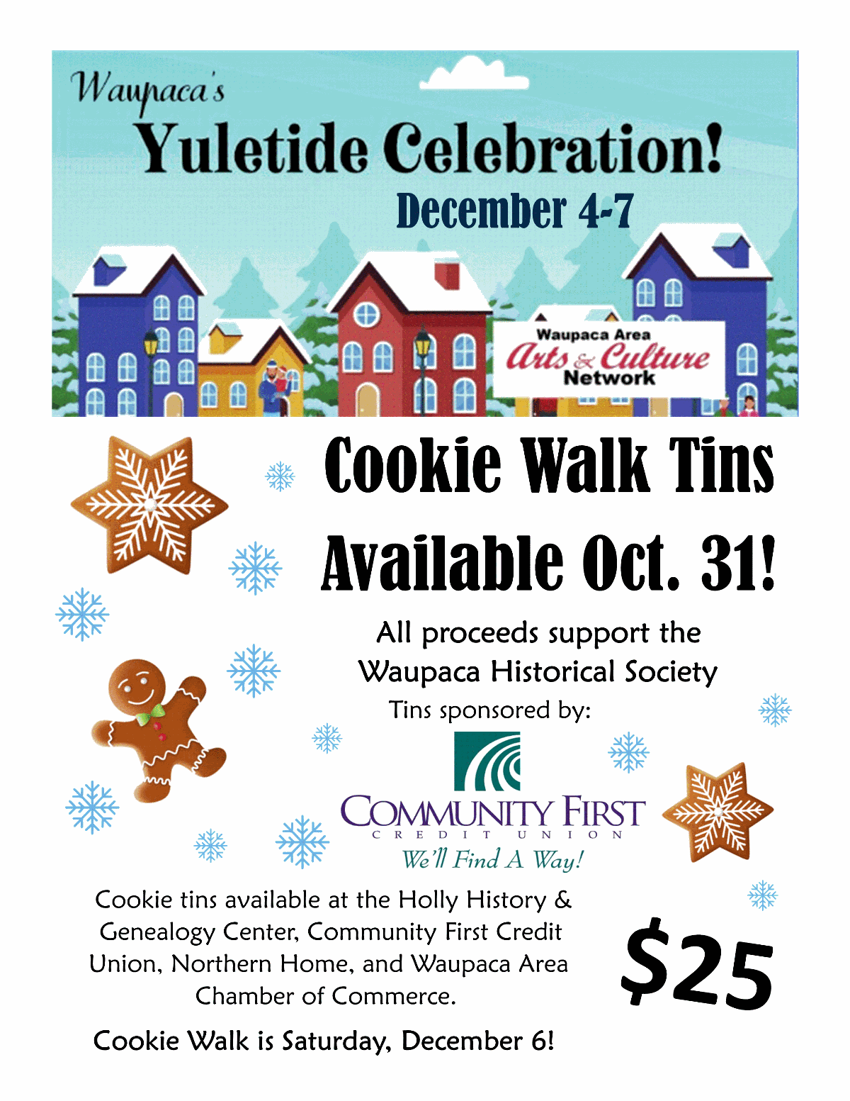 - Cookie Walk, 10 am-4 pm (get your cookie tin beginning on Friday, Oct. 31)